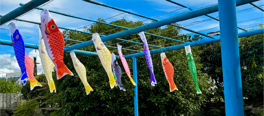 鯉のぼりは、滝を登り切った鯉が龍になるという中国の故事に由来する縁起物として、健康、学業、出世のご利益があるので、様々な願いを込めて多くの方が奉納されます。宝寿寺は石鎚山の麓にあるため一年中強い風が吹き、鯉のぼりが力強く泳ぐので十分なご利益を得られると言われており、風鈴と同じく季節を問わず奉納しております。