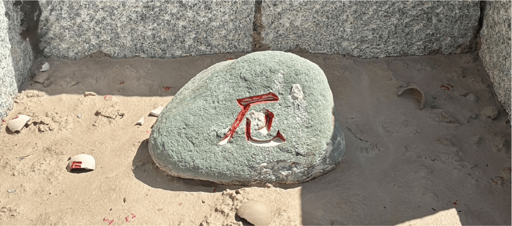 手水場の向かって左手のお地蔵様の隣には「厄捨て石」があります。